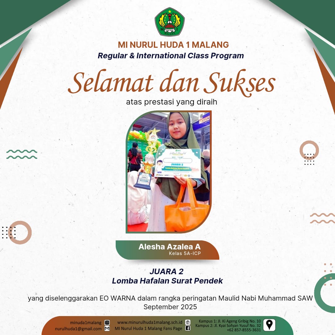 Untuk mengembangkan bakat, minat, serta kepribadian peserta didik, MI Nurul Huda 1 Malang menyediakan berbagai kegiatan ekstrakurikuler yang terarah dan bermanfaat. Apa saja ? dan bagaimana daftarnya ?
